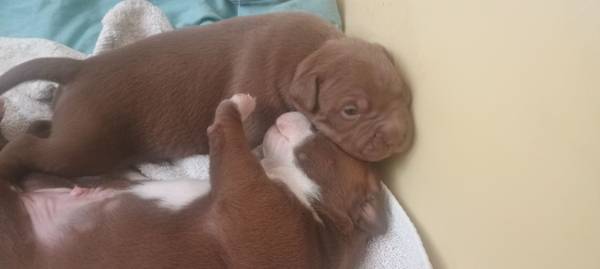 Meet our adorable red heeler pitbull mix puppy! This little bundle of joy was born on September 29, 2025, and will be ready to go to their forever home on November 29.he just opened his eyes few days ago are currently being breastfed. We’re happily accepting reservations, but we have been receiving a lots of calls! Just a friendly reminder that online inquiries can be a bit unpredictable, so it’s first come, first served. A small fee will apply. Rest assured, the puppy will be vaccinated and dewormed before heading home. We’re located near Ridgecrest, CA. Unfortunately, we can’t offer delivery at this time, but we can’t wait for you to meet this sweet pup!two last dogs on the pictures are the mother and father show contact info