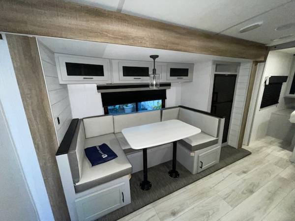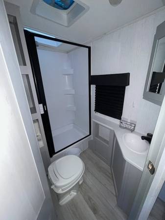 Pull behind trailer, 2022 Hartland North Trail it’s a 25 BHPS. Great condition, like new. Has outside kitchen, lots of storage space, solar panels for the extra-long-life battery, electric jacks, one big slide out, and new tires. Also comes with two mounted flatscreen TVs, a large roll out awning, spacious bathroom with shower, full kitchen, master bedroom furnished with new bed and built in headboard, providing extra storage space and USB connection.