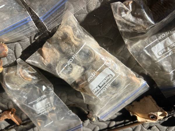 The new parts are wheel bearings, brake pads, brake shoes, a track bar, an air filter and some seals. Not sure if they are for the transmission or differential.