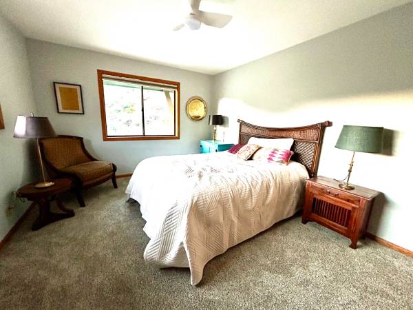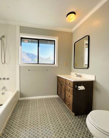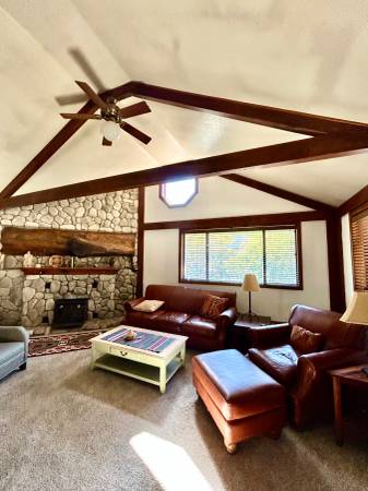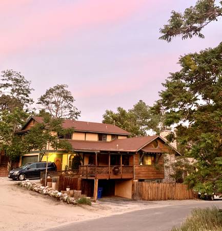 Looking to share our charming, mountain view vacation home. You will love the main living area's unique wood log, river rock, wood burning stove fireplace. It is surrounded by dramatic wood beam accented, vaulted ceilings, wonderful architectural pottery shelving and beautiful furnishings and accessories. This home is fully furnished and has a fully equipped kitchen with newer appliances. Your $2,500 lease payment ( that's only $1250 each for 2 roommates) It allows full time occupancy of the house main level which includes the living room , formal dining room , kitchen, 1 bedroom, 1 bath, laundry room, barbecue patio, side yard and garage and upstairs occupancy of I bedroom and bath. There is 2 car driveway parking and 1 garage space parking included with your lease. The reserved owners space on the second floor has a private entry from rear yard and workshop which is also reserved for owners use. The home is located on a paved road and is only 3 miles from the 5 freeway and new Tesla supercharging station. It is only a 20 minute commute to the new Hard Rock Casino , Tejon Outlets and the Pyramid Lakes recreation area. It is only a 35 minute access to the Magic Mountain and Santa Clarita area . The Frazier Park Market and several village restaurants and shops are only a one block walk down the hillside. A wonderful Kern County Frazier Mountain library, sport park, senior center and recreation center is also a short walk away . The owner will consider allowing one small pet. This is non smoking property for a maxim 2 occupants to enjoy peaceful/ fresh mountain living and still have easy access to LA.