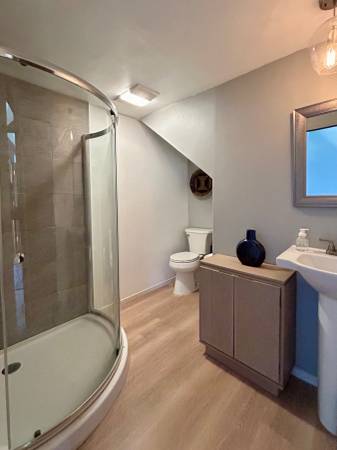 This is a one year lease with option to renew. There is a studio apartment with a very quiet tenant below the main living area and kitchen, so tenants must be considerate of noise level. The 2 bedrooms are located on separate ends of the house so there is good noise and privacy separation there. The laundry is in the hall by the downstairs master so noise needs to be considered there. Owners will visit the property occasionally to over see ongoing renovations. but notify tenant in advance and use rear entry to occupy their space. A new garage door with opener is on order and owners are gettin quotes for a new split air condition system which will be installed by next summer.Exterior of house is scheduled for painting