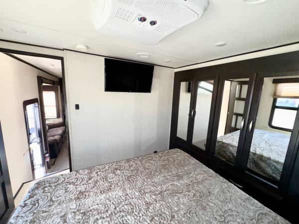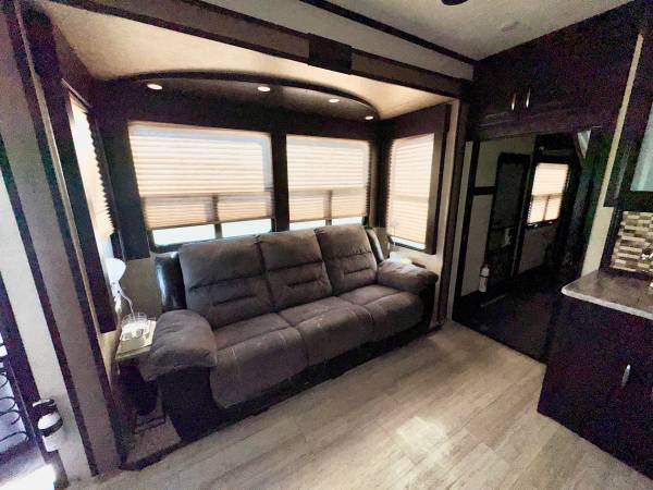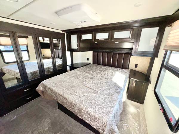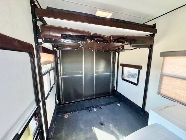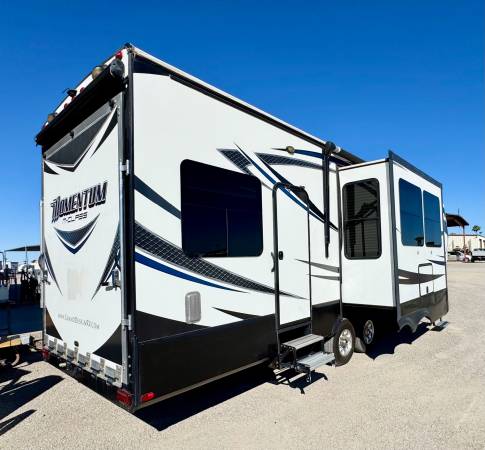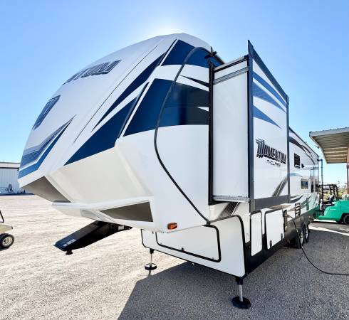 Good Morning! My name is Tony Guadarrama and I just wanted to share this Momentum we just got in. It has a 10 Foot Garage with a rear built in Patio kit and arear awning to keep you cool on the deck. Has a stand along washer and ddryer in the garage for your convience. A total of 35'11" legnth keeps it weighing at 12,400lbs for easy towing. 4100 cargo weight is enough to bring your fun. Hydraulic auto leveling will get you set up fast. After setting up youd like to take a shower? 117 fresh water , 104 gray water and that 12 gallong water heater will get you freshened up fast. The unit is solid with no water moisture probelems No pet hair no mildew or smoke smells. 💥 If your in the market for a toy hualer? Contact me right now on it before it goes.