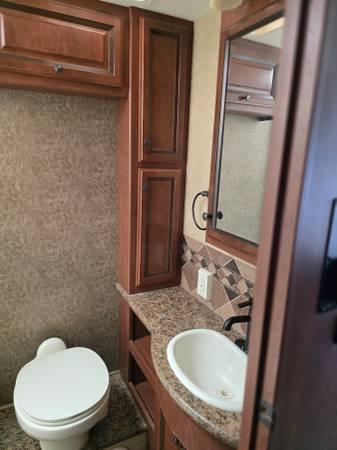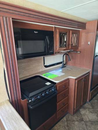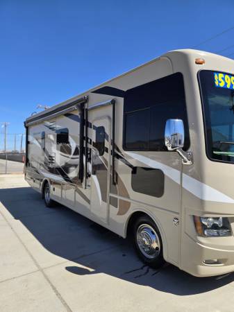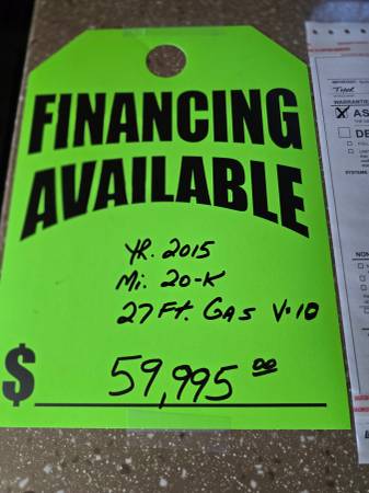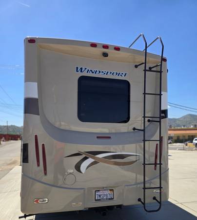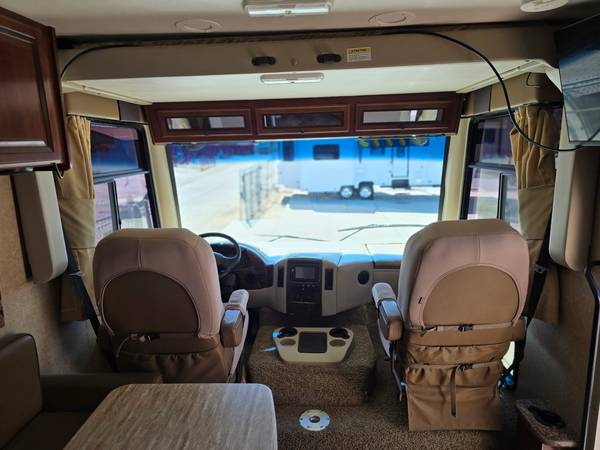 2015 Thor Motor Coach Windsport Series M-27K Ford V10 Gas Motor. One slide-out. 3 burner stove with oven & microwave. Walk around rear bed. Two flat screen TVs. Powered Awning. Powered auto level jacks. Bed above driver seat that powers up & down. Financing available on approved credit. No hidden RV fees at Ashmore Motors.