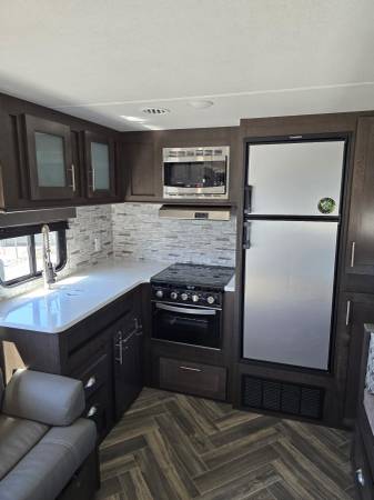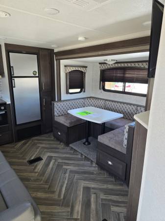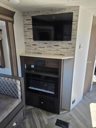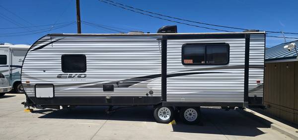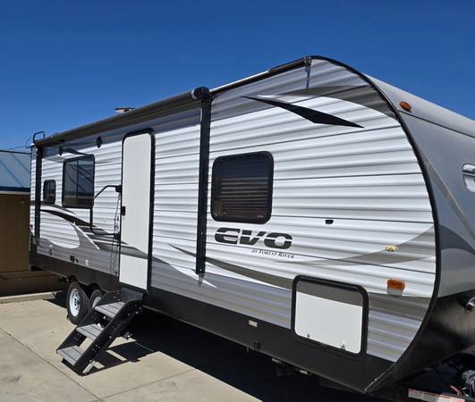2020 Forest River Evo Series M-2360. One slide out. Rear kitchen. Table turns into a bed. Front bedroom with walk around bed. Flat screen TV with fireplace. 3 burner stove with oven & microwave. Large bathroom for the size of trailer. Powered Awning. Powered front jack. Powered stabilizer jacks. Outside shower. Super clean RV for the year. No hidden RV fees at Ashmore Motors. Financing available upon approved credit.