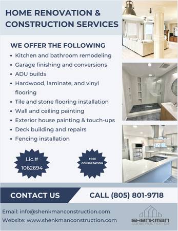 Shenkman Construction Co. General Contractor License #1062694We are now on Facebook & Instagram! Just search for Shenkman Construction -We specialize in residential home and commercial...