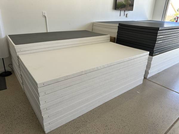 Selling Dollamur Swain Hybrid mats. 1.5 yrs old, used in low traffic BJJ academy. Original owner, cleaned daily with Mat Attack (manufacturer recommended cleaner) scrubbed once a week (using the Powr-flite scrubber recommended by Dollamur. I have 45 mats that are 2" thick and 8 more mats that were cut down to 2.5´ wide. $100 per full size mat and $50 for trimmed mats. These will cover over 920 sq/ft. I also have 40 brand new Matsuru smooth mats in white for $120 each, and I have 65 brand new Dollar Swain hybrid mats in black for $120. Located in Ridgecrest, CA. Grab a Uhaul and save a lot in shipping and taxes.