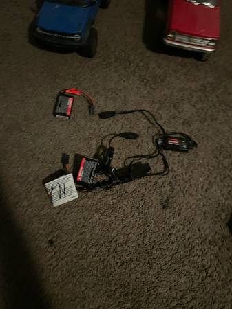 Selling my full Traxxas TRX-4M setup. Includes 3 fully running RC trucks (Blue Bronco, Red Chevy, Black Ford), all original controllers, chargers, batteries, and a trailer. Everything works perfectly — ready to drive right away.