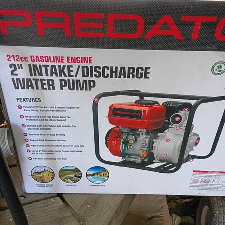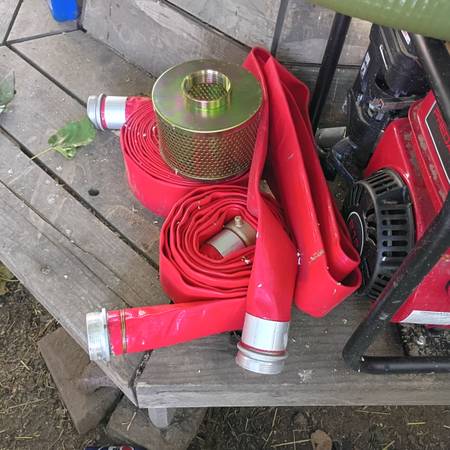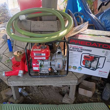 Comes with a non collapsible 2in intake hose and 2 2in discharge hoses. Also comes with the paper work and the box.