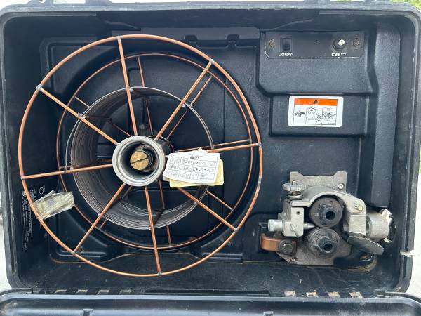 Miller 12RC Suitcase wire feeder for sale. It came with an engine driven welding machine I bought as a package deal and I never used it. I was told it works great but was never able to test it due to not having the 4 pin gun connector. It’s currently setup for .072 wire and it comes with a Tregaskiss Toughgun, and a 50ft miller 14 pin cable to connect it to your engine driven welding machine. 1200$ obo
