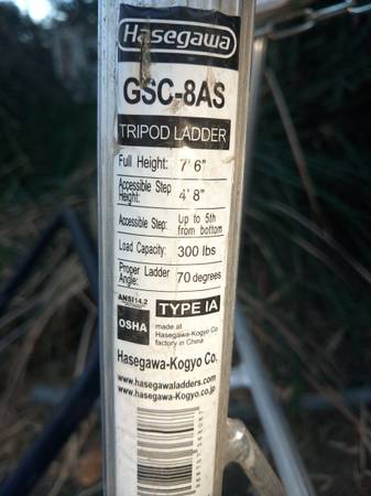NEW HASEGAWA TRIPOD LADDER ORCHARD LADDER ALL ALUMINUM MODEL GSC-8AS ADJUSTABLE LEG WITH MULTIPLE SETTINGS AND LOCKS IN PLACE SELLING NEW FOR $250.00 CALLS ONLY six six six 366 three zero five three...