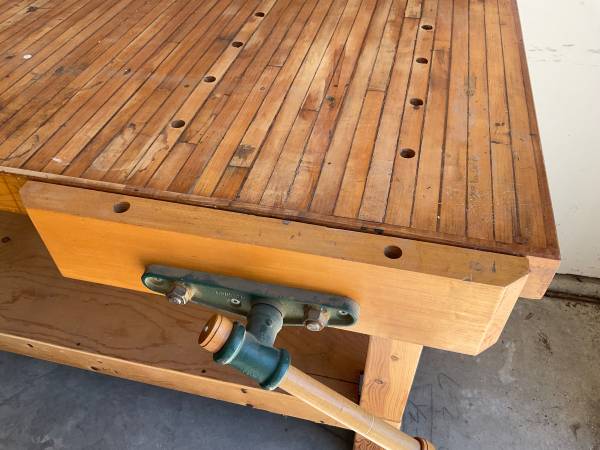 Workbench with 2” hard maple top ( repurposed bowling ally) with vise $300