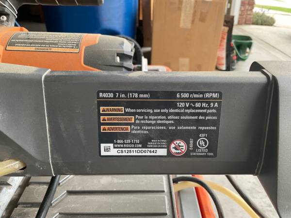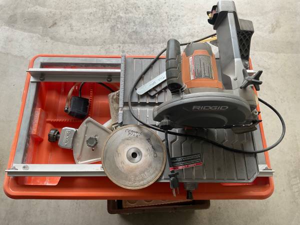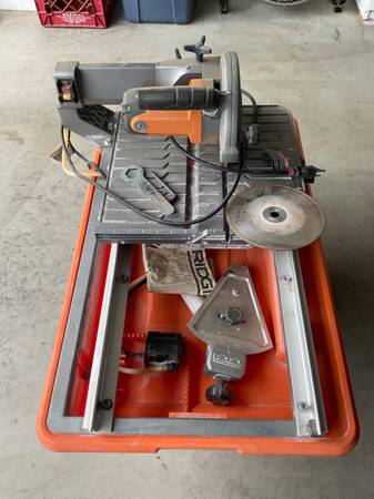 7” wet tile cutter with tile and glass blade. Used once for 1000 sq ft floor $100