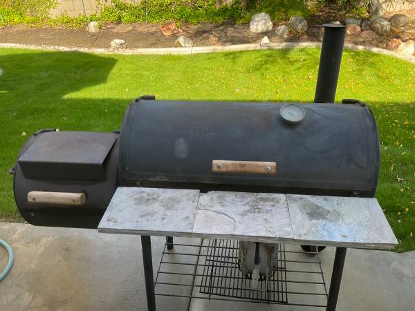 Offset smoker, heavy steel not what you get at Home Depot. Fire bricks in fire box to keep temp steady. $200
