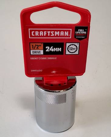 Posted 11/12/2025 Metric Craftsman 24MM, 12pt, 1/2in drive, Part Number #44242 Shallow Socket. Full Finish Polished Chrome. Craftsman Lifetime Warranty I am retiring and clearing out the garage....