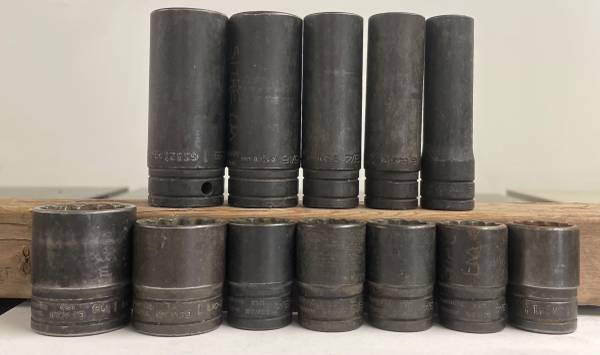 1x) “LOT OF 12” Snap-On - 9/16” thru 1-1/16” - Shallow & Deep - 1/2” Dr. - 12 Pt. - $68.00