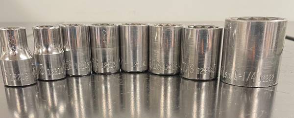 “LOT OF 8” ALLEN - 7/16" thru 1-1/4" - Chrome - 1/2” Drive - 12 Point - SAE