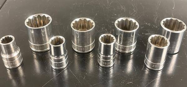 “LOT OF 8” HUSKY - 7/16” thru 1” - Shallow - Chrome - 1/2” Drive - 12 Point - SAE