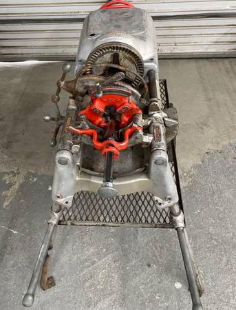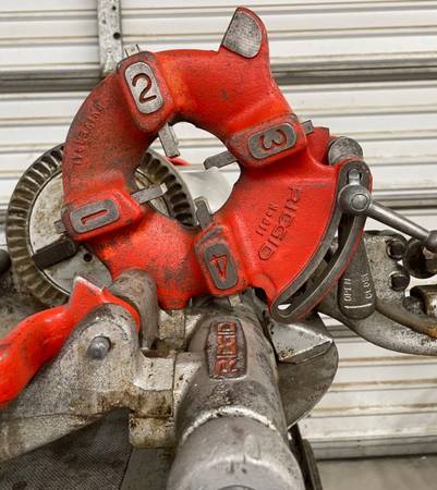 “The RIDGID 535 Pipe Threading Machine with Universal Stand/Cart, Foot Switch, 820 Cutter, 811 Die Head with 4x) Dies and 341 Reamer are all being sold as "USED" but in excellent working condition with some signs of cosmetic wear, scratches and scribed but, are fully operational and functions as intended. SEE PICTURES.”