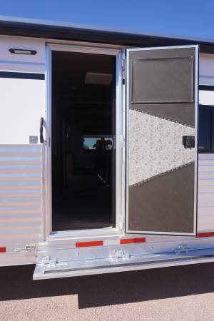 The Horse Area is Fully Rubber Lined and Insulated, Has Padded Stalls, Pop Up Roof Vents, and Stud Stall.