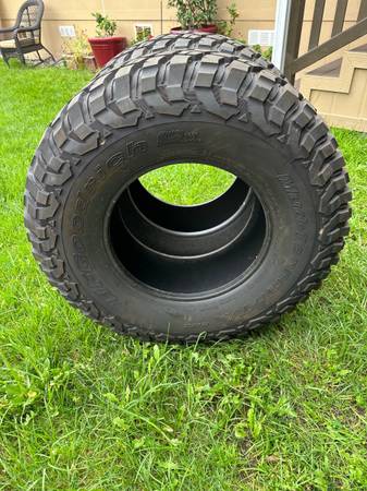 Hello have for sale a set of 2 tires Bfgoodrich Mud Terrain T/A Baja Champion KM3 size LT37/12.5/R18” in the excellent condition DOT 0924 with 95% tread left, these are heavy duty tires load range “C” please serious buyers only and no low ballers thanks for looking.!!!!